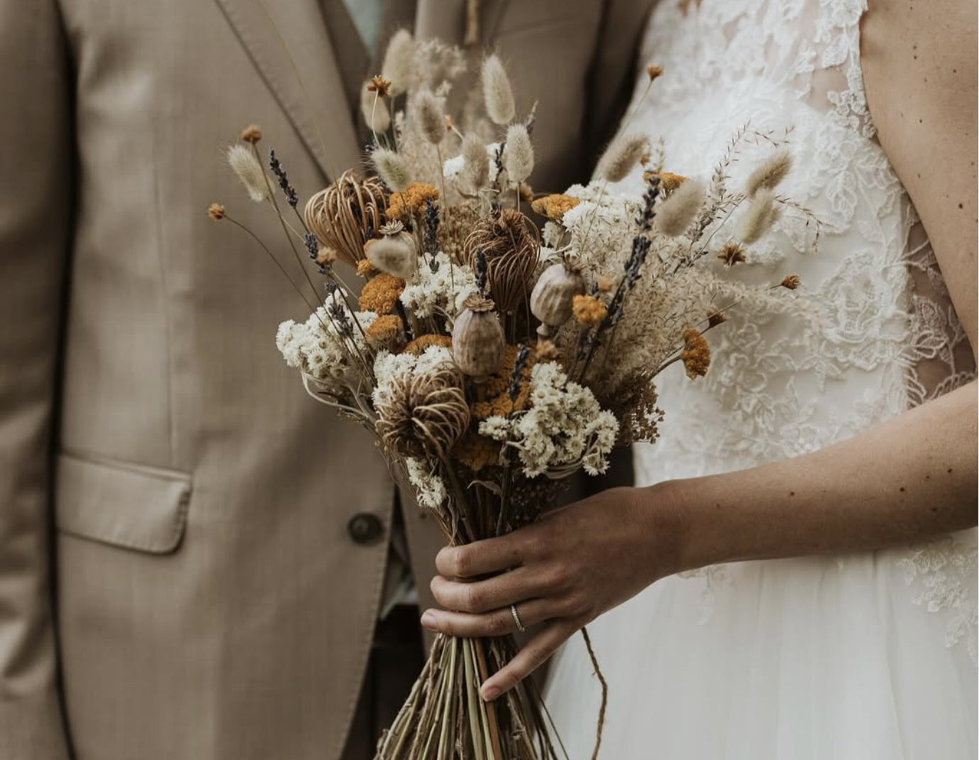 Torkningen sker skonsamt – ofta med hjälp av solenergi – och varje blomma hanteras varsamt hela vägen från jord till bukett. Vi kan spåra varje blomma tillbaka till sin odlare, och våra buketter sätts alltid ihop för hand med omsorg och känsla för detaljer.